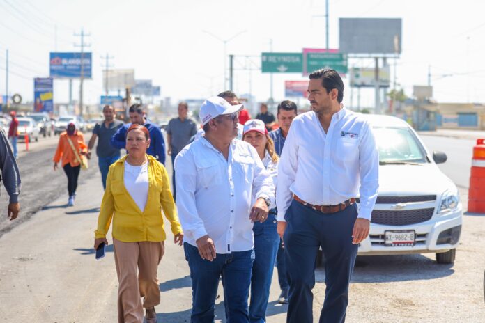 El Alcalde Carlos Peña Ortiz supervisó el Programa de Rehabilitación de Pavimento en la autopista Reynosa-Monterrey, específicamente entre la calle Revolución y Vista Alta, con el objetivo de rehabilitar más de 3,800 metros cuadrados.