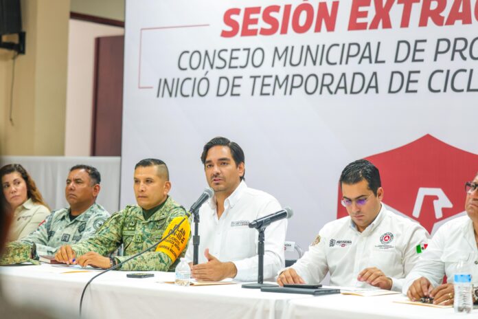 El Alcalde Carlos Peña Ortiz presidió la Sesión Extraordinaria del Consejo Municipal de Protección Civil, sobre Inicio de Temporada de Ciclones Tropicales 2025, en la que participaron autoridades militares, civiles de los tres niveles de Gobierno y representantes sociales.