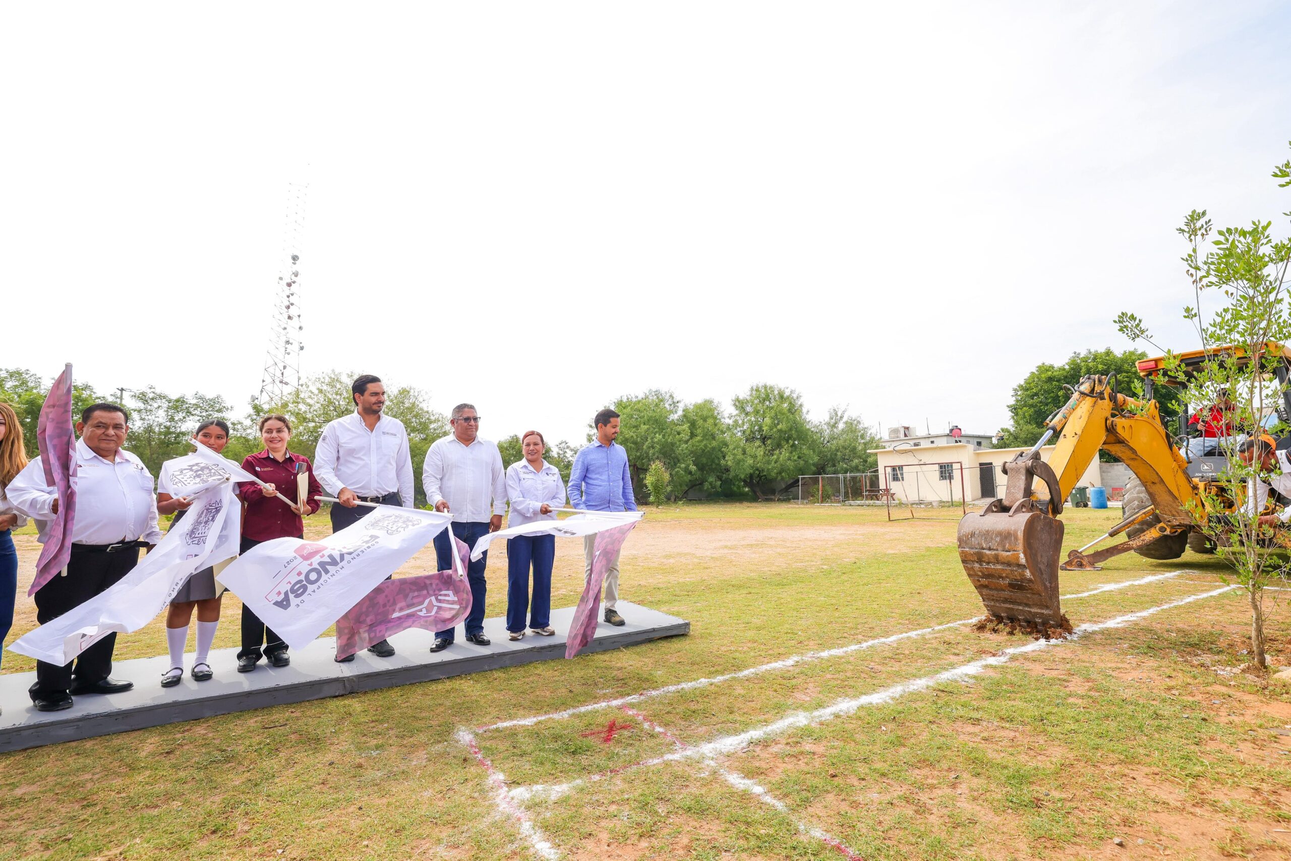 Asistieron al inicio de construcción del aula escolar en la colonia Lampacitos: el Secretario de Obras Públicas, Eduardo López Arias; el Supervisor Escolar, Armando Blanco Chávez; la estudiante Sofía Sandoval Lizcano; Cloyd Izaguirre Fernández, de Bienestar Social y los Regidores Karla Paola Luna González y Arnoldo Treviño Azuela.