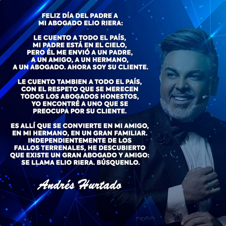 «Le cuento a todo el país: mi padre está en el cielo, pero él me envió a un padre, a un amigo, a un hermano, a un abogado», señaló Hurtado en un mensaje compartido por redes sociales, destacando la labor de su representante legal. «Ahora soy su cliente (…) independientemente de los fallos terrenales, he descubierto que existe un gran abogado y amigo», concluyó el comunicado.