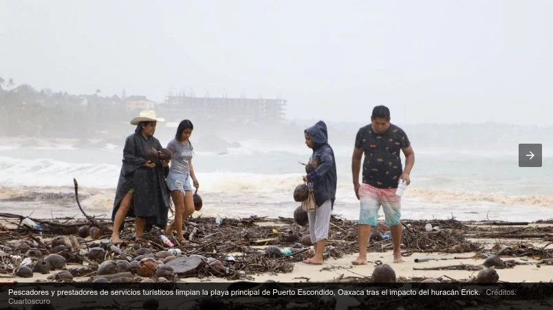 El huracán Erick se degradó a depresión tropical la tarde del jueves 19 de junio, según informó el Centro Nacional de Huracanes (NHC) de Estados Unidos en su boletín de las 18:00 horas. Aunque su intensidad disminuyó, persisten lluvias intensas que representan riesgo elevado en Guerrero, Oaxaca y Michoacán. El sistema se localizó a 95 km al noroeste de Acapulco, Guerrero, con vientos máximos de 55 km/h y desplazamiento hacia el noroeste a 19 km/h, con pronóstico de disipación nocturna.