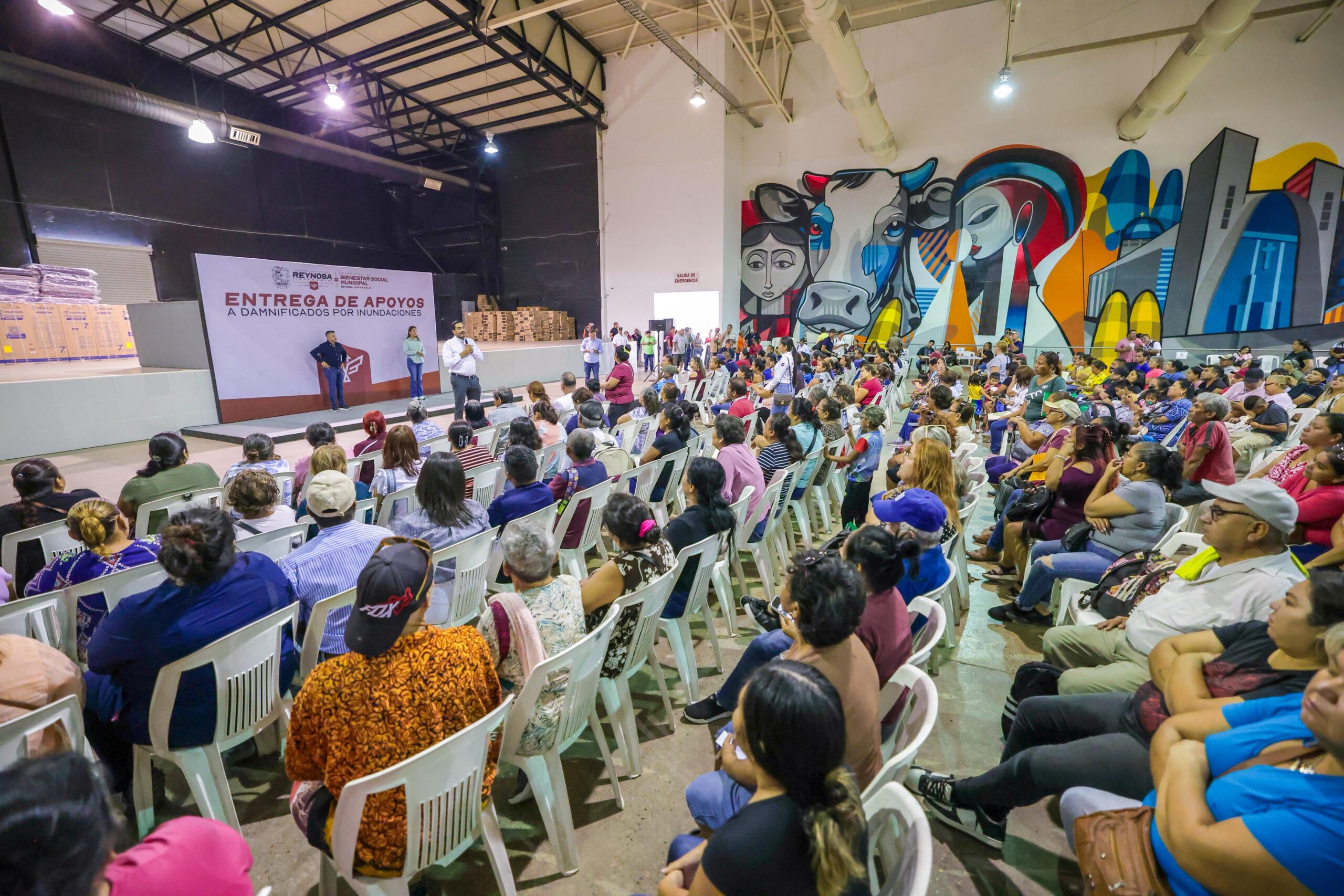 El Presidente Municipal Carlos Peña Ortiz entregó colchones y parrillas a personas afectadas por las inundaciones en Reynosa este apoyo fue entregado en el Auditorio Municipal durante la mañana de este miércoles 18 de junio.