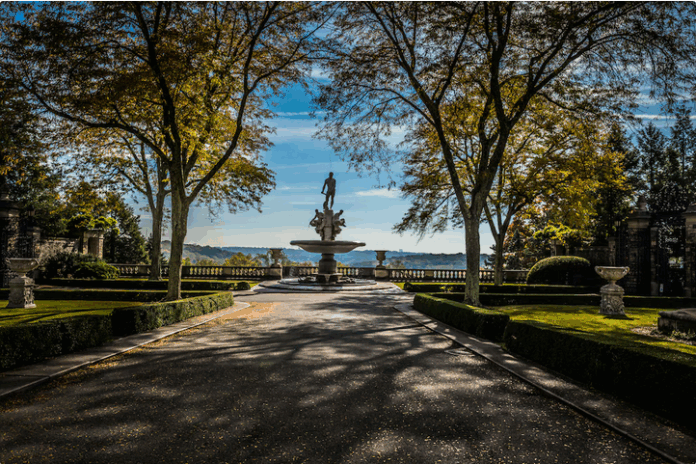 Entre los aspectos más destacados según reportes de Business Insider se encuentran una alameda de tilos perfectamente ordenados, fuentes decorativas y una imponente glicinia traída de China en el siglo XIX. Los espacios exteriores también albergan piezas modernas pertenecientes a la colección personal de Nelson Rockefeller, quien fuera gobernador de Nueva York y vicepresidente estadounidense. Tras su fallecimiento en 1977, donó la propiedad al National Trust for Historic Preservation.