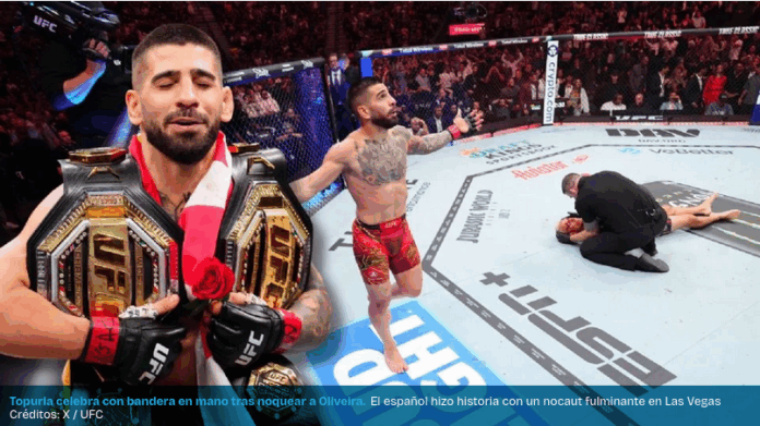 El peleador de ascendencia georgiana pero nacionalizado español, Ilia ‘El Matador’ Topuria, conquistó el título de peso ligero de la UFC tras noquear a Charles ‘Do Bronx’ Oliveira durante el primer round en un evento celebrado en Las Vegas.