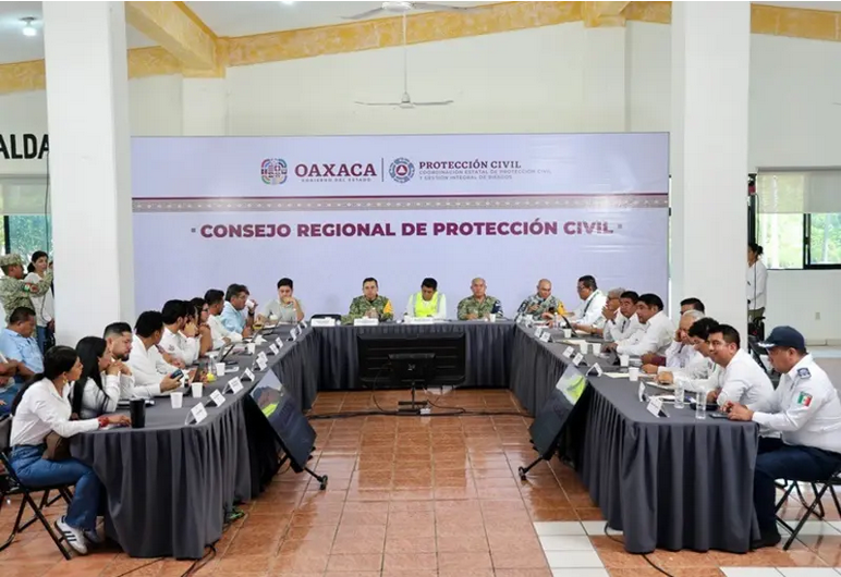 El mandatario estatal Salomón Jara Cruz encabezó un encuentro de Protección Civil destinado a revisar el progreso en la asistencia a habitantes impactados por el huracán » , «Erick» :». En este foro, resaltó el compromiso de la mandataria federal Claudia Sheinbaum con los residentes de los doce ayuntamientos más golpeados por el fenómeno natural. La reunión tuvo lugar en la instalación del 54 Batallón de Infantería en Puerto Escondido.
