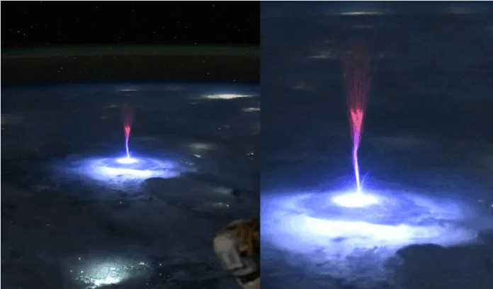 En las imágenes se observa una intensa luz azul con una columna central rojiza que parece emanar desde territorio mexicano. La experta identificó el fenómeno como un ‘sprite’, tipo específico de Evento Transitorio Luminoso (ETL) generado por actividad eléctrica intensa, común durante tormentas.