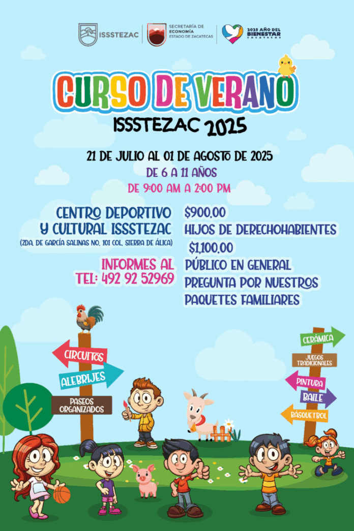 El Instituto de Seguridad y Servicios Sociales de los Trabajadores del Estado de Zacatecas ha anunciado la apertura de inscripciones para su programa vacacional destinado a menores de edad. La convocatoria se emite con miras a recibir a participantes entre 6 y 11 años durante el periodo estival.