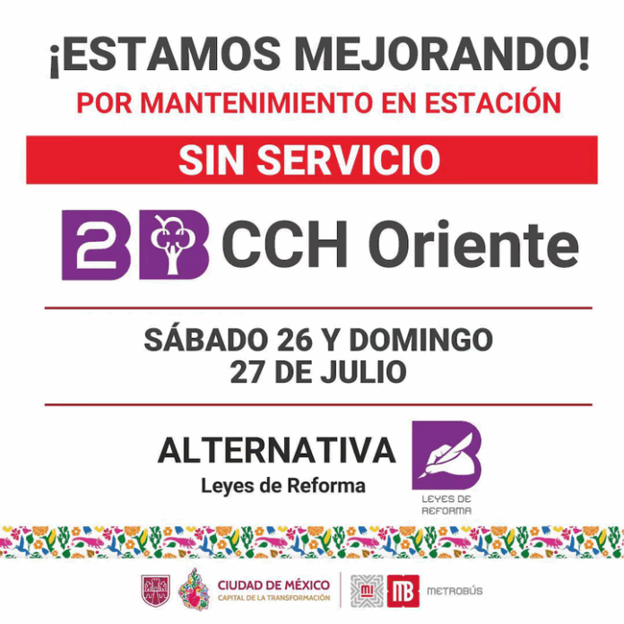 Según el comunicado, la estación CCH Oriente dejará de atender al público desde el sábado 26 de julio hasta el domingo 27 de julio. Las labores de mantenimiento se enfocarán en optimizar las operaciones de este punto con alta afluencia de pasajeros. La última jornada normal de funcionamiento será el viernes 25 de julio.