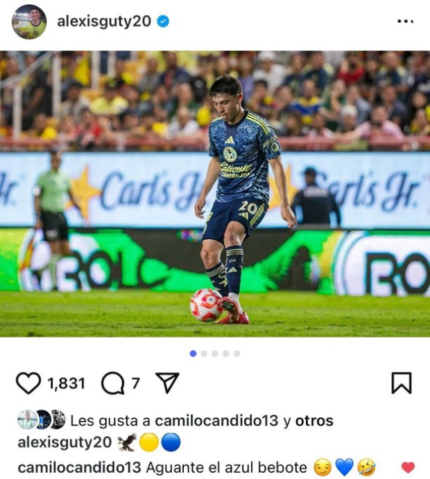 El jugador uruguayo Camilo Cándido, actualmente vinculado al Atlético Nacional, dejó una marca en la cuenta de Instagram de Alexis Gutiérrez, nuevo refuerzo de las Águilas del América, recordando su paso compartido por Cruz Azul.