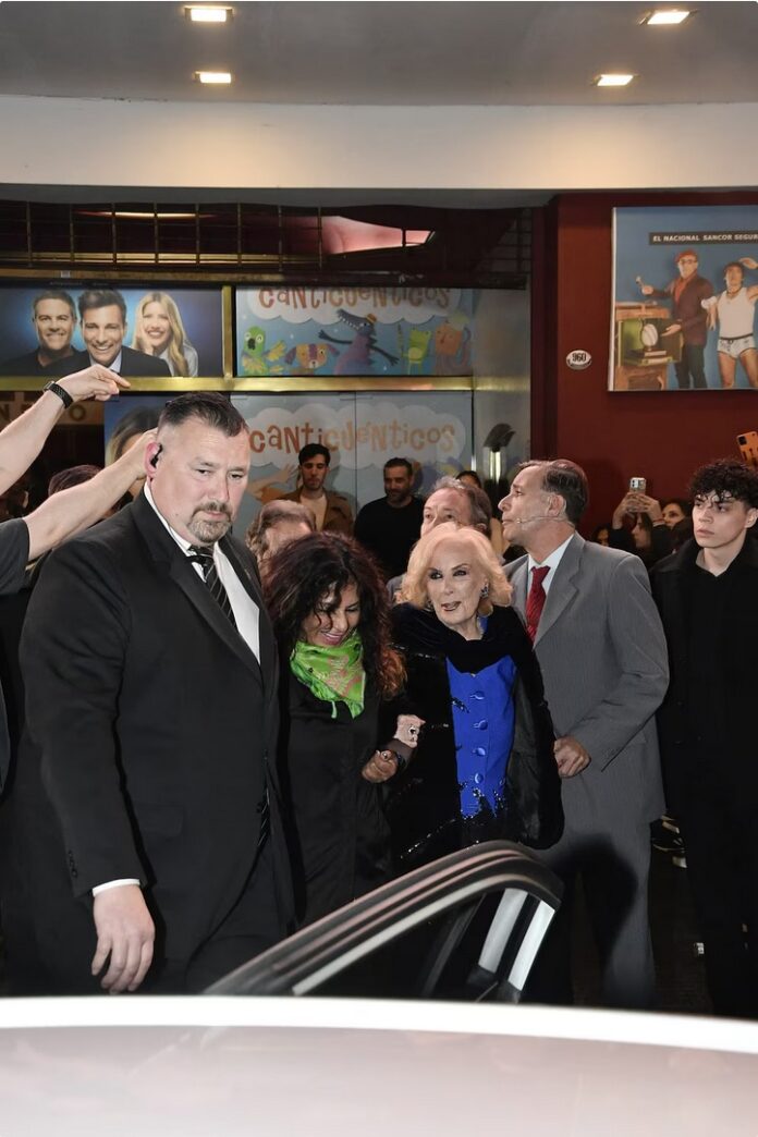 La reconocida conductora Mirtha Legrand asistió a una representación de ‘La cena de los tontos’, una de las obras más exitosas de la temporada en Buenos Aires. Acompañada por su productor Alejandro Veroutis y su equipo de confianza conformado por Héctor Vidal Rivas, Elvira Guaraz y Gladys Andrade, la estrella televisiva llegó puntualmente a las 20 horas al Teatro El Nacional luciendo un elegante conjunto de Claudio Cosano compuesto por un tailleur azul decorado con piedras negras y una estola de visón.