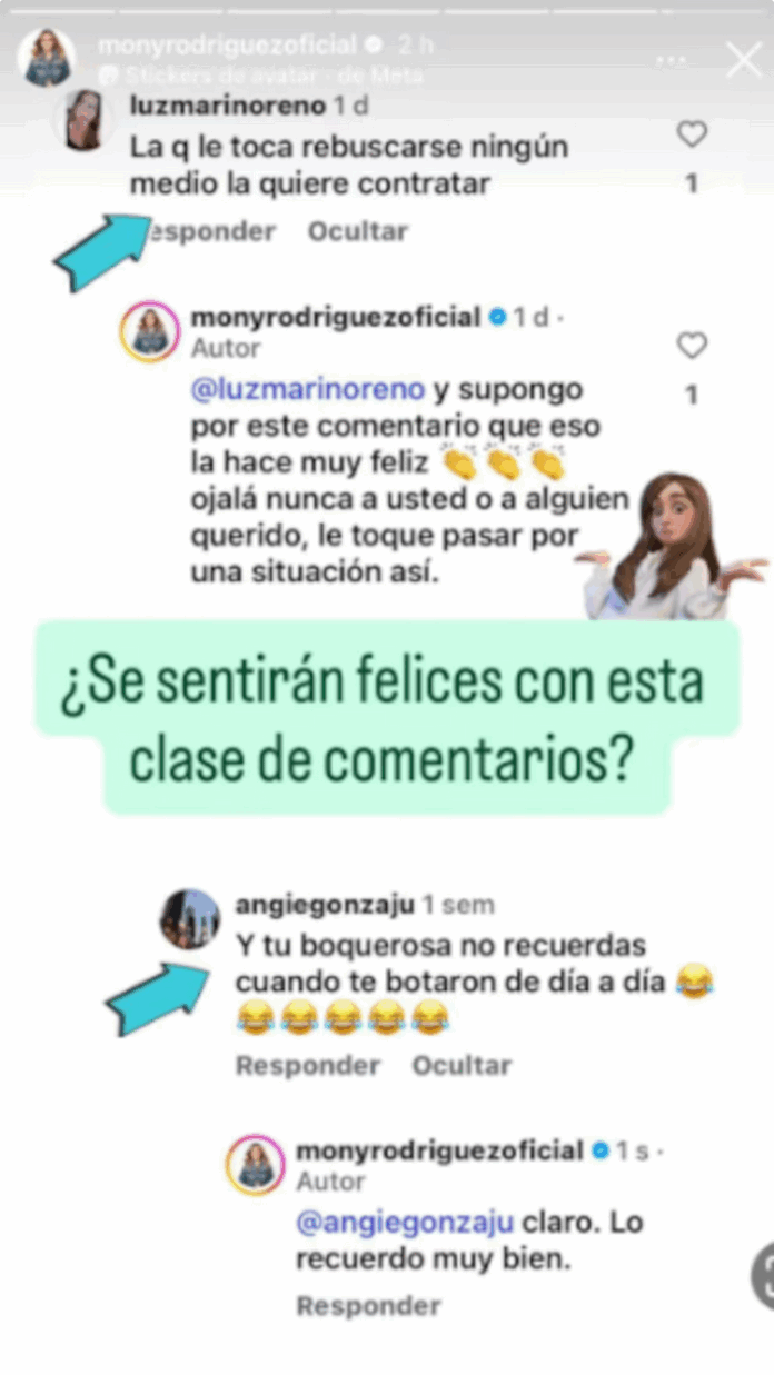 Mónica Rodríguez enfrenta comentarios recurrentes en plataformas digitales relacionados con su alejamiento de programas televisivos. Usuarios le han recordado su paso por ‘Día a día’, incluyendo frases como: