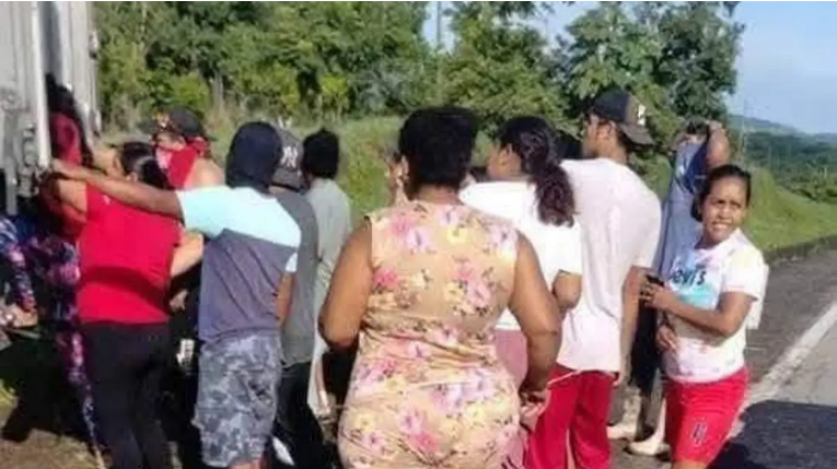 En un tramo de la carretera que conecta Tonalá con Pijijiapan, un vehículo de carga quedó inmovilizado tras la falla de uno de sus neumáticos. Un grupo de personas aprovechó esta situación para cometer un acto de violencia contra el camión, usando machetes para forzar la cerradura de la caja de carga y sustraer su contenido. El hecho ocurrió en cercanías de la comunidad La Polka, en el estado de Chiapas.