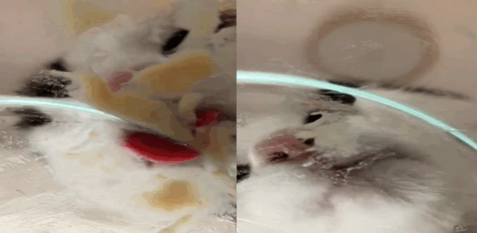 . Para capturar mejor la escena, colocó su dispositivo móvil dentro del recipiente y registró el momento con ángulos únicos.
