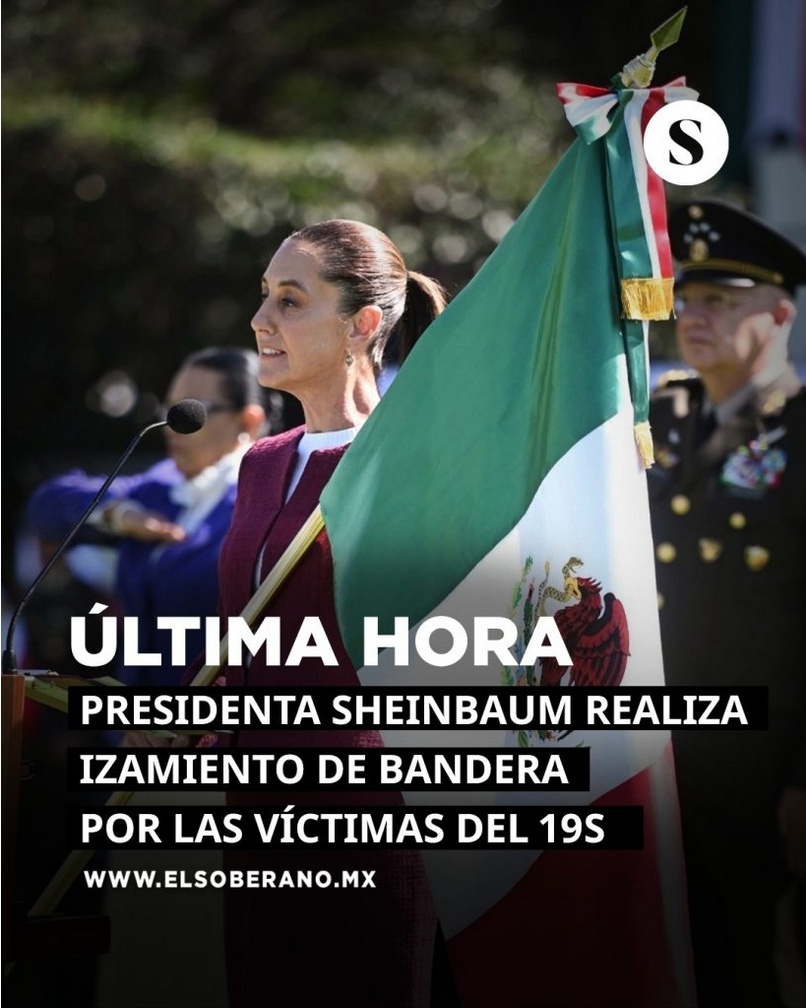 La Presidenta de la República Mexicana supervisó personalmente la ceremonia de izamiento de la bandera nacional, evento central de las conmemoraciones realizadas este 19 de septiembre de 2025 en la zona metropolitana.