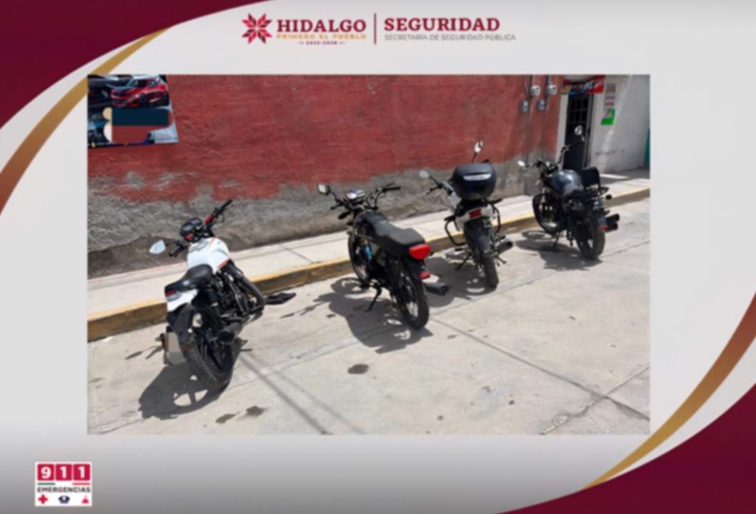 La Policía Estatal de Hidalgo llevó a cabo un operativo que resultó en la recuperación de cuatro motocicletas y la captura de dos individuos relacionados con robos en la capital del estado. La acción se desarrolló en la colonia San Antonio el Desmonte, donde se encontraron las unidades sobre la calle Jorge Rojo Lugo.