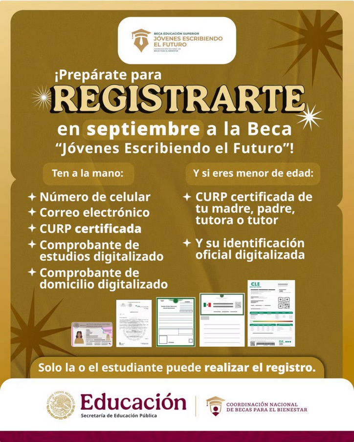 La convocatoria para Jóvenes Escribiendo el Futuro 2025 iniciará su periodo de inscripciones el 1 de octubre y permanecerá abierta hasta el 15 del mismo mes. Este programa gubernamental está dirigido específicamente a estudiantes que cursan licenciaturas, técnico superior universitario o sus equivalentes, siempre que provengan de instituciones educativas primarias o secundarias categorizadas como «prioritarias».