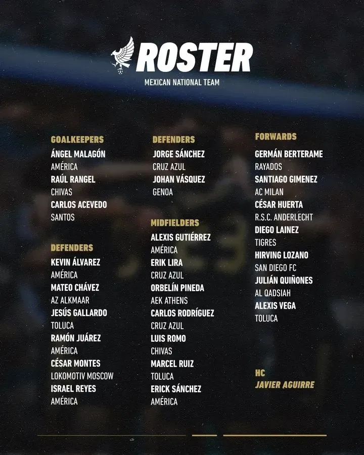 La espera terminó: Javier Aguirre reveló finalmente la lista de jugadores convocados para los próximos compromisos amistosos de la Selección Mexicana, en los que se medirá ante Colombia y Ecuador durante la fecha FIFA. Tras días de incertidumbre por posibles bajas y lesiones, dos futbolistas de Chivas fueron considerados para formar parte del combinado nacional.