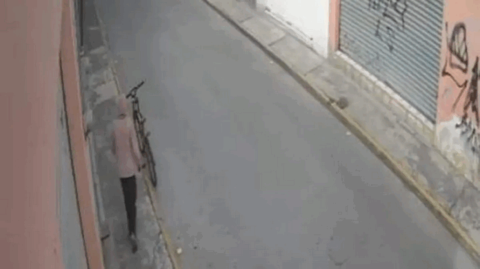 Según el material grabado por un comercio vecino, el hecho tuvo lugar a las 08:51 horas. En ese momento, la víctima estacionó su bicicleta entre la calzada y la banqueta, sin imaginar que sería blanco de un hurto inmediato. Los responsables, dos hombres de aspecto juvenil, se acercaron al lugar vistiendo sudaderas con capucha que les cubrían parcialmente el rostro.