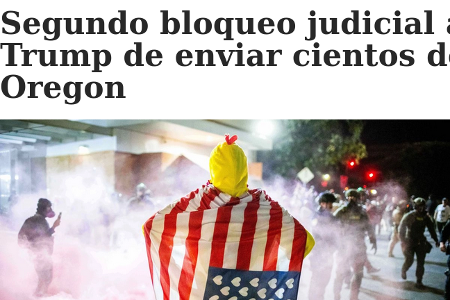Un segundo fallo judicial ha detenido el intento del presidente Donald Trump de desplegar efectivos militares en Portland, Oregon, luego de que una jueza federal emitiera una orden de restricción temporal contra el movimiento. La magistrada Karin Immergut argumentó que no existe evidencia suficiente que respalde la intervención armada, al señalar que los incidentes ocurridos no constituyen una insurrección organizada.