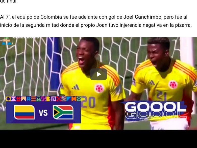 Colombia enfrentará a España en la siguiente ronda, selección que avanzó como una de las mejores terceras y superó por la mínima diferencia a Ucrania en los octavos de final. El partido definirá quién accede a semifinales del certamen juvenil.