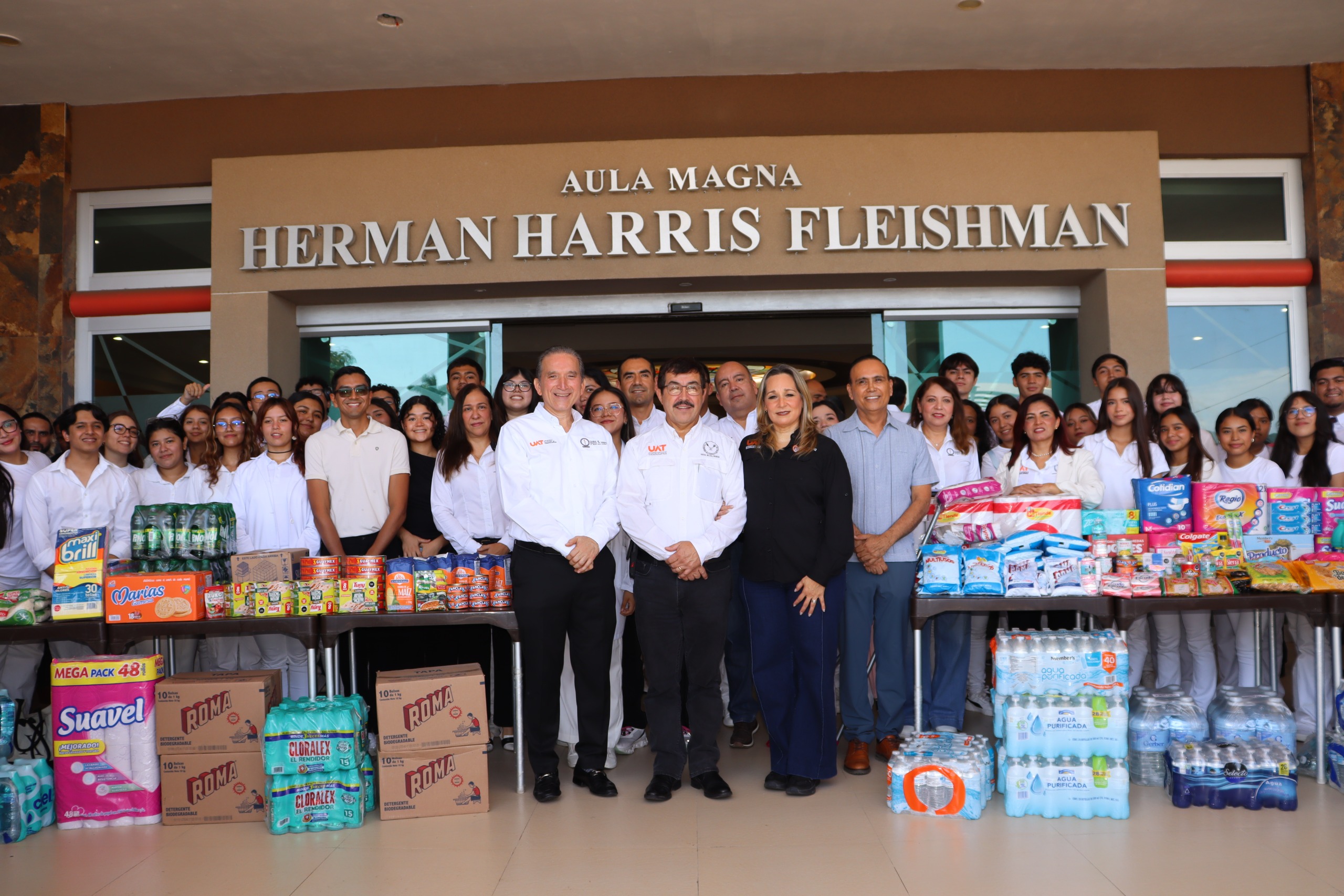 En el mismo marco, se instaló un Centro de Acopio frente al Aula Magna “Herman Harris Fleishman”, con el fin de recolectar alimentos no perecederos, artículos de limpieza y productos de higiene personal para apoyar a las familias de la comunidad universitaria y de la región que resultaron afectadas por las lluvias.