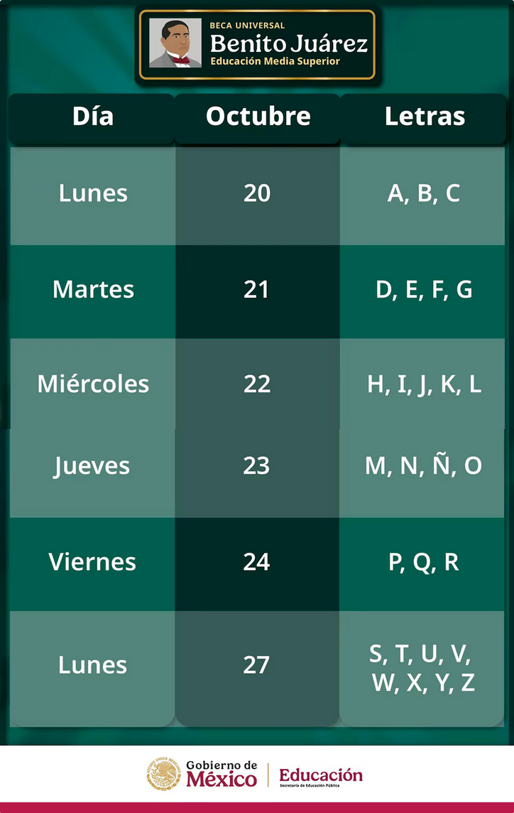 Hasta la fecha, ya se ha completado el pago para los beneficiarios cuyos apellidos comienzan con las letras de la A a la R. Según el calendario oficial emitido el sábado 18 de octubre, quienes tengan apellidos que inicien con S, T, U, V, W, X, Y o Z recibirán su recurso el lunes 27 de octubre, fecha que marcará el cierre de esta ronda de pagos.
