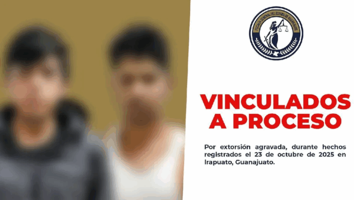 La Fiscalía General del Estado de Guanajuato logró la vinculación a proceso de dos hombres, identificados como Miguel Arturo «N» y Luis Jorge «N», por su posible participación en un caso de extorsión agravada ocurrido en Irapuato a finales del mes de octubre.