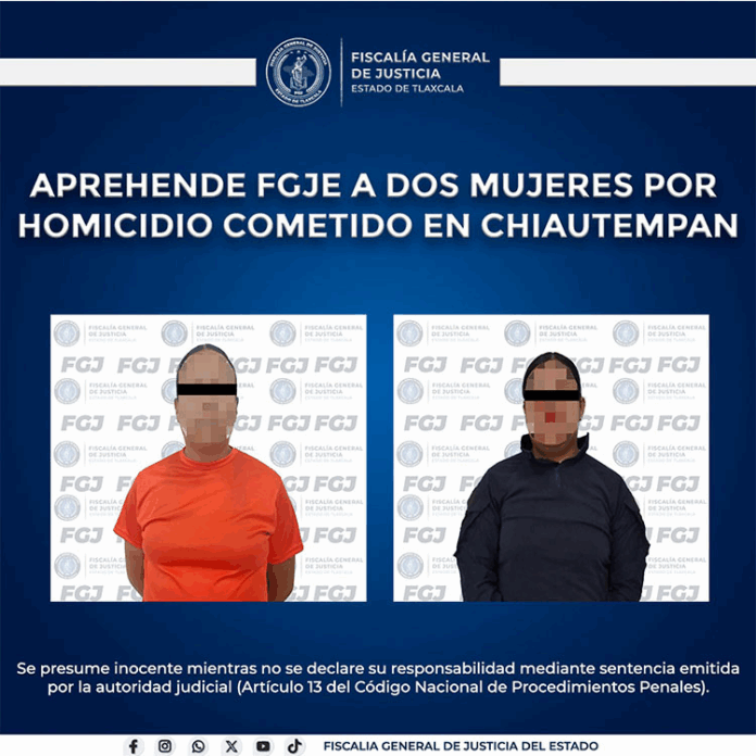 En un operativo coordinado por la Policía de Investigación de la Fiscalía General de Justicia del Estado (FGJE), fueron aseguradas Lizbeth N. y Lesly N., presuntas responsables de un homicidio calificado cometido en el municipio de Chiautempan.