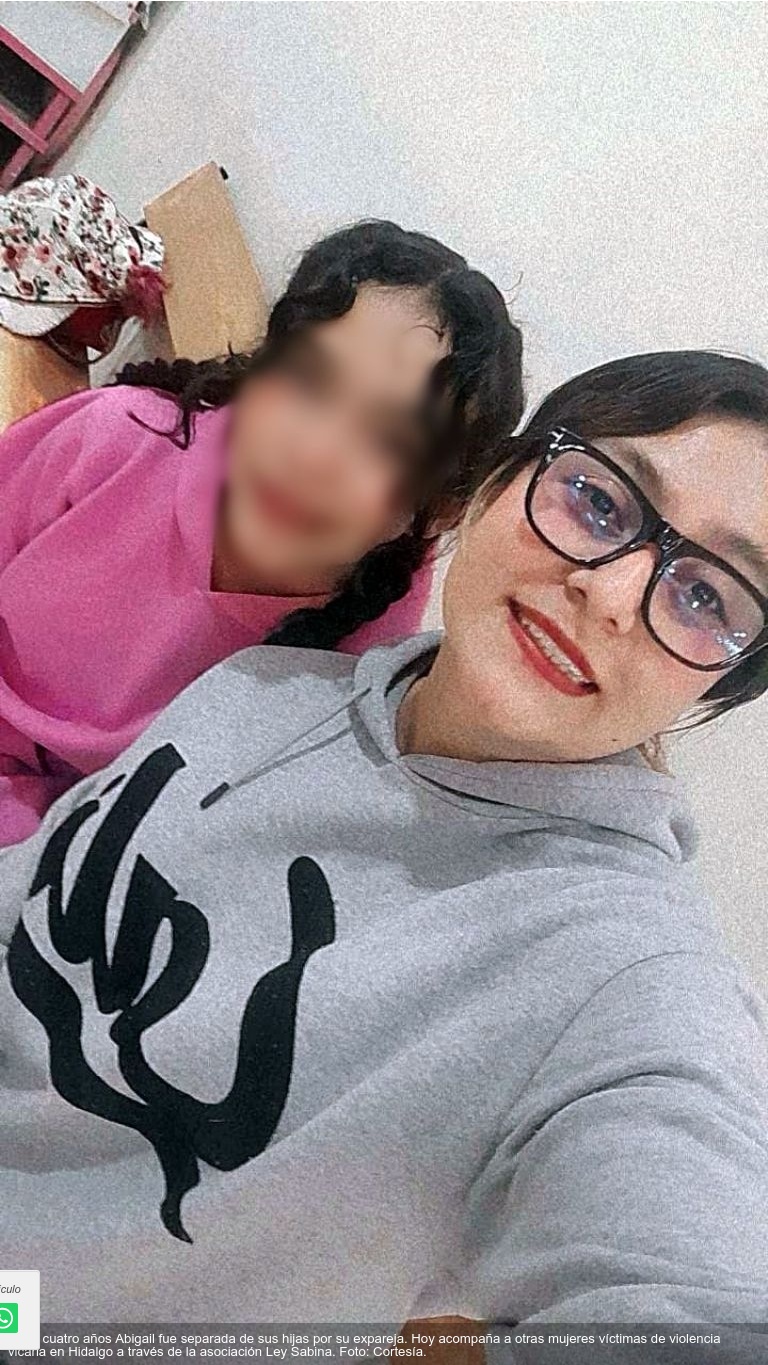 Abigail Díaz Acosta, originaria de Hidalgo, fue separada de sus hijas en 2021 tras una ruptura con su expareja. Lo que comenzó como una crisis familiar derivó en un proceso de sufrimiento que la llevó a descubrir que era víctima de violencia vicaria. Hoy, transformó su dolor en acción y acompaña a otras mujeres en situación similar a través de la asociación civil Ley Sabina.