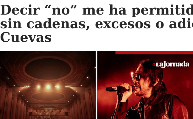 Con más de tres décadas en la escena musical, Beto Cuevas mantiene su vigencia no solo por su evolución artística, sino por su capacidad de mantenerse libre de ataduras: «decir ‘no’ me ha permitido caminar sin cadenas, excesos o adicciones», afirmó el cantante chileno, referente del rock en español y exlíder de La Ley, en entrevista con La Jornada.