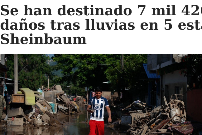 La administración encabezada por Claudia Sheinbaum ha asignado un total de 7 mil 426 millones 125 mil pesos para hacer frente a las consecuencias de las intensas lluvias y desbordamientos ocurridos a inicios de octubre en cinco estados del país. El siniestro dejó un saldo de 83 muertos y 16 personas desaparecidas, informó la mandataria durante su rueda de prensa en Palacio Nacional.