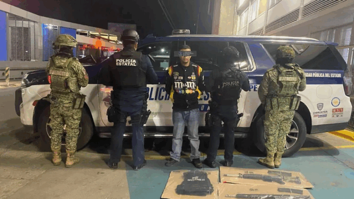La Secretaría de Seguridad Pública del Estado de Chihuahua (SSPE) realizó la aprehensión de un individuo que portaba armamento de largo alcance, municiones reservadas para uso militar y un chaleco táctico con inscripciones relacionadas a un grupo delictivo originario de Sinaloa.