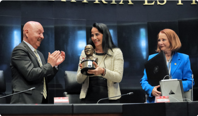 La senadora Laura Itzel Castillo Juárez, presidenta de la Mesa Directiva del Senado, resaltó durante la ceremonia que la doctora Borrayo Sánchez ha desarrollado modelos de atención que han salvado miles de vidas al optimizar la respuesta institucional ante emergencias cardiovasculares. Asimismo, subrayó la relevancia de su liderazgo para promover la coordinación médica a nivel nacional.