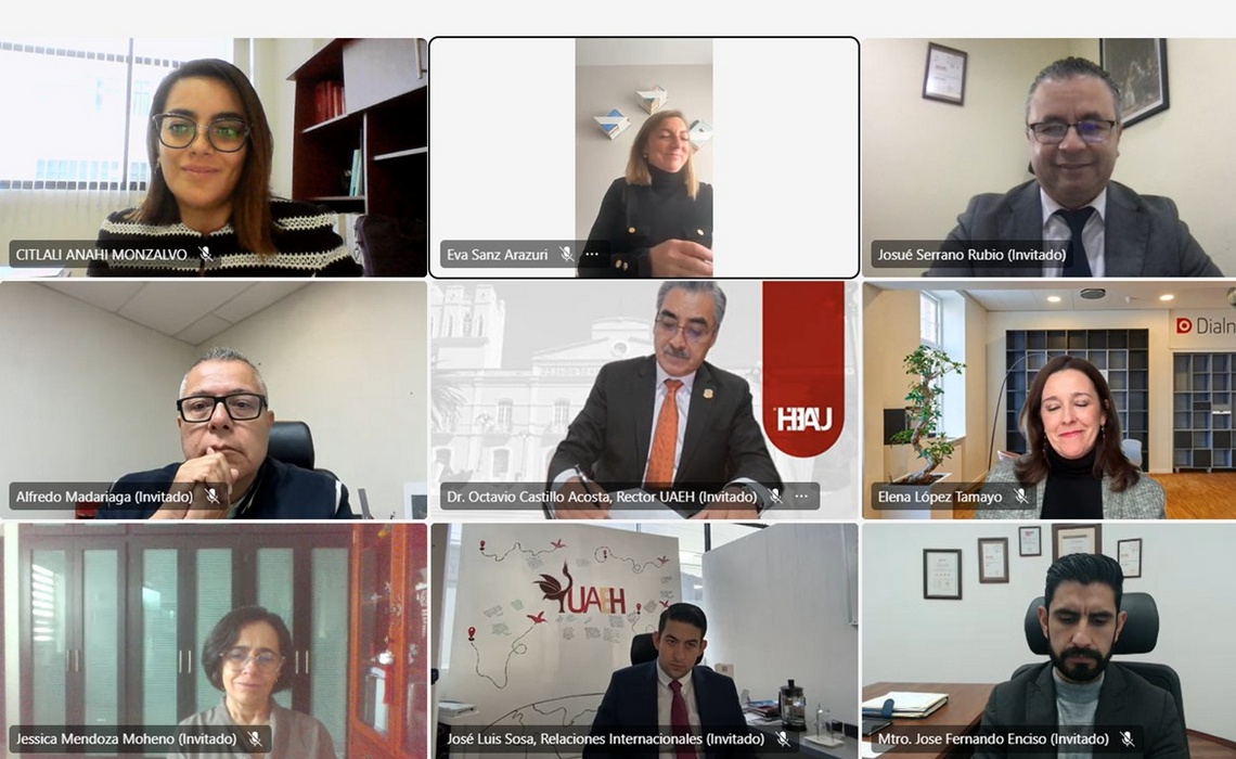 En el evento participaron representantes de alto nivel de ambas instituciones. Por la UAEH asistieron José Fernando Enciso Ruiz, coordinador de Vinculación e Internacionalización; Jessica Mendoza Moheno, coordinadora de Investigación, Desarrollo e Innovación; Citlali Anahí Monzalvo López, directora general de Comunicación Social; Alfredo Hernández Téllez, director de Tecnologías Web y Webometría; Alfredo Madariaga Navarrete, director de Investigación; José Luis Sosa Martínez, director de Relaciones Internacionales; Mauro Alberto Amador Lámbarri, encargado de revistas y boletines científicos; y Josué Serrano Rubio, director de Relaciones Interinstitucionales. Por la Universidad de La Rioja estuvo presente Eduardo Fonseca Pedrero, vicerrector de Política Científica.