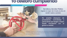 La Secretaría de la Contraloría del Poder Ejecutivo en Querétaro lanzó una iniciativa preventiva denominada «No a los regalos», con el fin de reforzar entre los empleados públicos la obligación de no aceptar presentes durante todo el año, especialmente en temporadas consideradas de alto riesgo como diciembre.