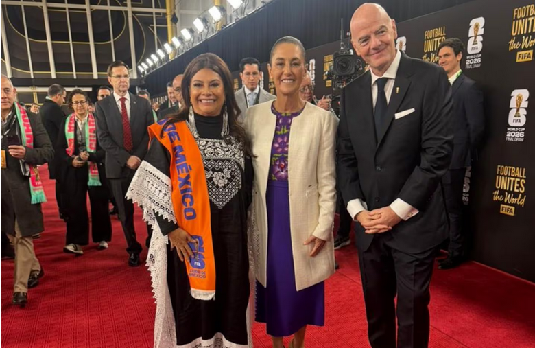 «Llegué acompañando a nuestra presidenta @Claudiashein al sorteo del Mundial 2026, recibidas por Gianni Infantino.¡Vamos México!»