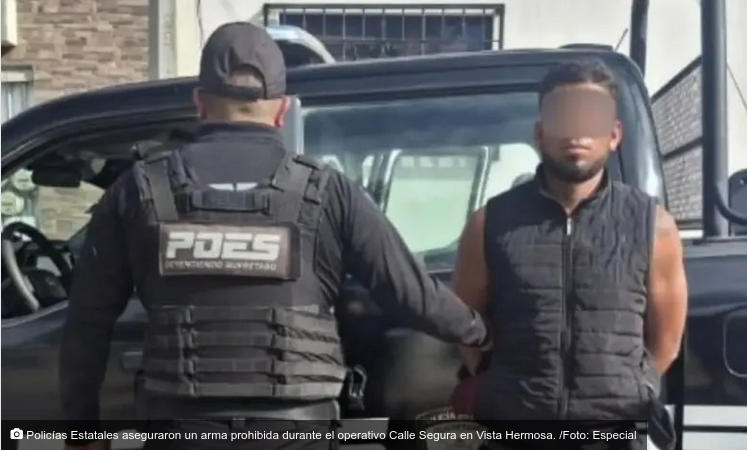 En el marco del operativo denominado Calle Segura, policías estatales intervinieron a un conductor que transitaba a exceso de velocidad en la colonia Vista Hermosa, en San Juan del Río, hallando en su poder un arma prohibida tras una revisión de protocolo.