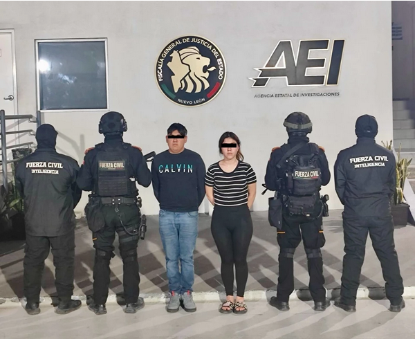 En un operativo derivado de un trabajo de inteligencia, agentes de Fuerza Civil capturaron a dos personas en Apodaca, Nuevo León, por posesión de sustancias ilícitas, a quienes además se les vincula presuntamente con una organización criminal.