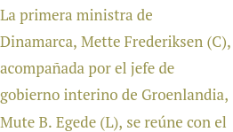 La primera ministra de Dinamarca, Mette Frederiksen, y el presidente del gobierno autónomo de Groenlandia, Jens-Frederik Nielsen, exhibieron una postura conjunta este martes, horas antes de la reunión prevista en Washington sobre el creciente interés de Estados Unidos en la isla ártica, un tema que ha generado tensiones diplomáticas.