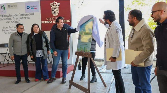 Al cierre del acto, representantes del Ayuntamiento de Pedro Escobedo y funcionarios de la dependencia estatal develaron las placas que acreditan a la comunidad y a las instituciones educativas como espacios promotores de la salud en el municipio.