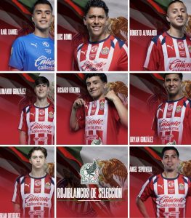 Los seleccionados son: Raúl Rangel, Richard Ledezma, Bryan González, Luis Romo, Brian Gutiérrez, Roberto Alvarado, Ángel Sepúlveda y Armando Hormiga González. Nunca antes en tiempos recientes un solo equipo había aportado tantos elementos de manera simultánea al Tri, lo que marca un hito inusual tanto para la institución tapatía como para la selección nacional.