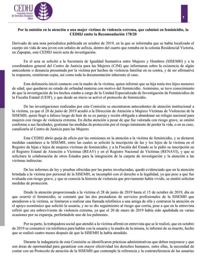 El 24 de octubre de 2019, Rosa fue encontrada sin vida en el cuarto que rentaba, con signos de asfixia. La Comisión Estatal de Derechos Humanos de Jalisco emitió la recomendación 178/2020, señalando la violación de sus derechos a la vida, a la justicia y a la debida diligencia. Incluso después de su muerte, una institución le llamó a su madre ofreciendo apoyo: «ya para qué», fue la respuesta.