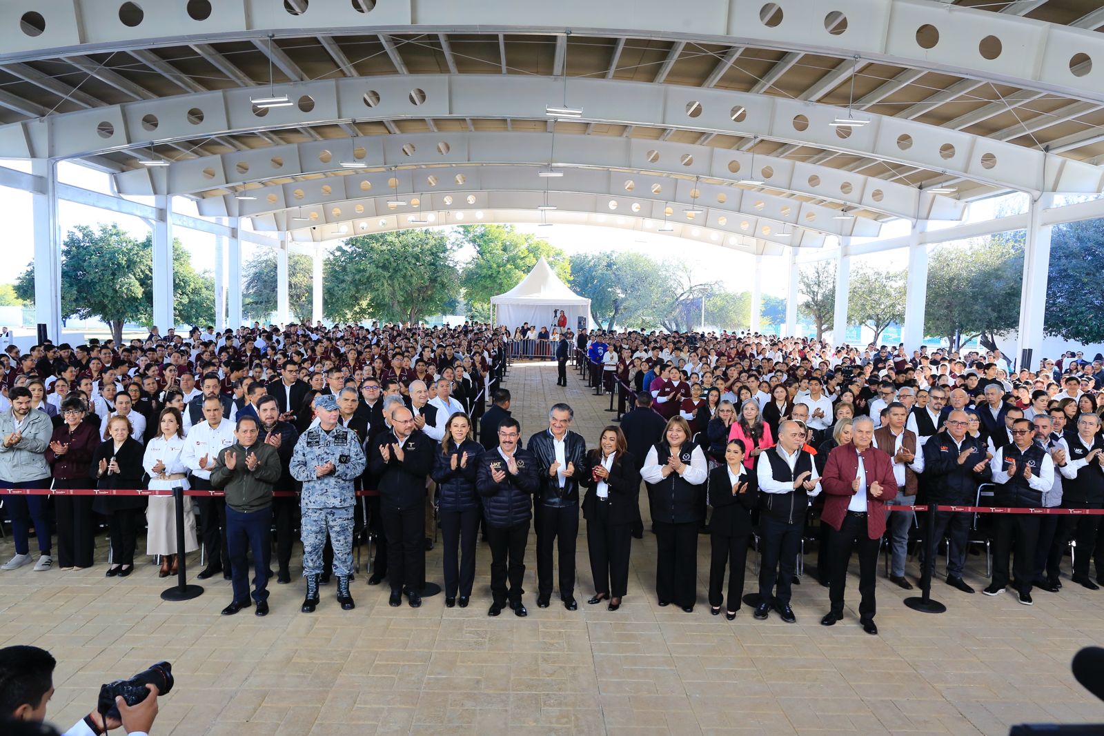 El rector Anaya Alvarado reconoció el respaldo del gobernador Villarreal Anaya para hacer posible la transformación de la Facultad de Enfermería y la entrega de nueva infraestructura, como la techumbre monumental de más de 1,160 metros cuadrados que se pone al servicio de la comunidad académica, así como una techumbre de usos múltiples con domo, que dignifica los espacios donde se construye la vida universitaria.