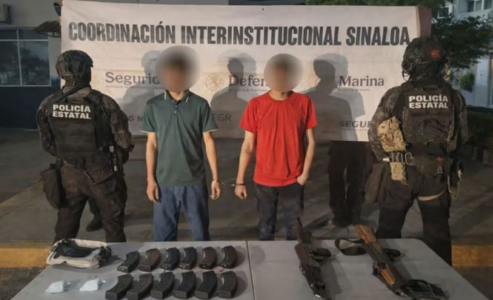 En dos intervenciones realizadas en fraccionamientos de la zona nor-oriente de la capital de Sinaloa, agentes del Grupo de Operaciones Especiales del Estado detuvieron a tres hombres, dos de ellos menores de edad, tras hallar armas de fuego, droga y una persona privada de su libertad.