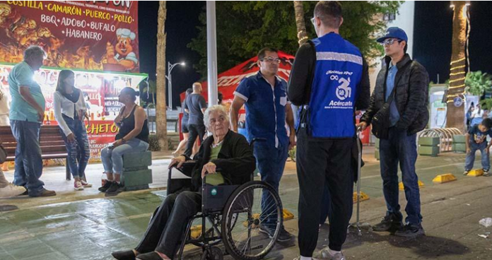 Elementos de la Dirección Municipal de Inclusión, fácilmente reconocibles por sus chalecos de color azul, realizan recorridos constantes por las zonas aledañas al escenario principal del evento, ofreciendo asistencia personalizada, orientación y acompañamiento para facilitar el traslado de personas con discapacidad.