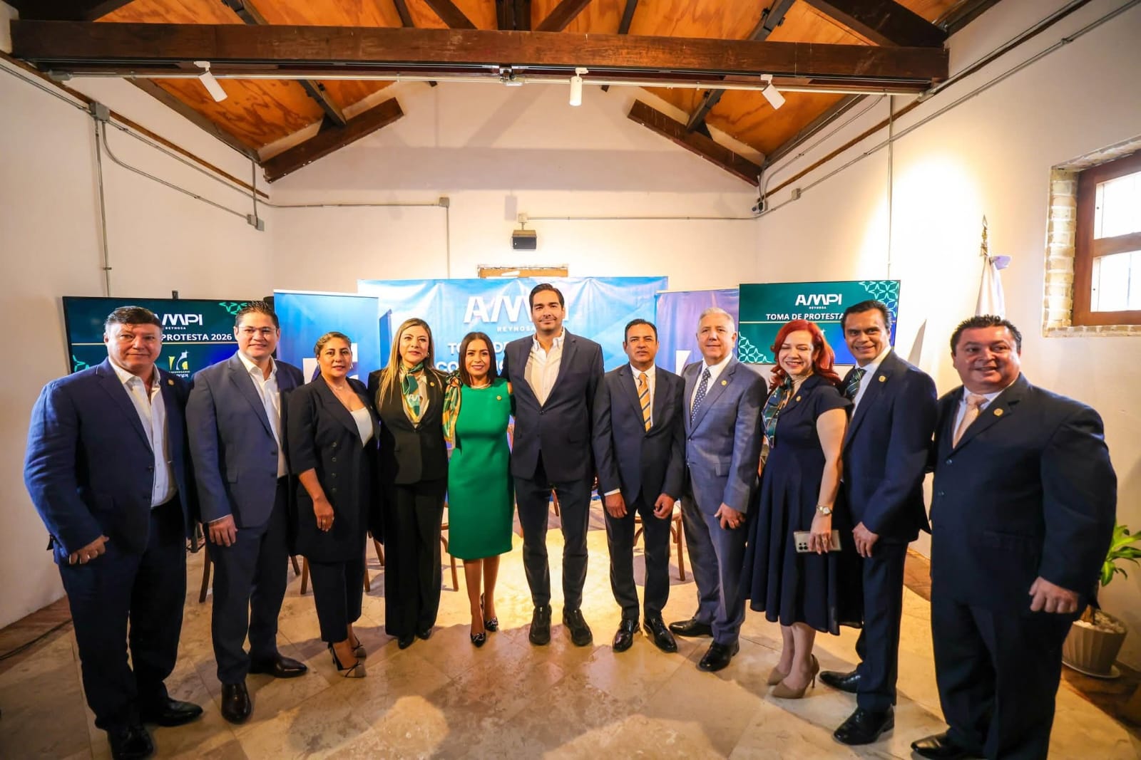 El Alcalde Carlos Peña Ortiz presidió junto a la dirigente nacional de la Asociación Mexicana de Profesionales Inmobiliarios, Jenny Althair Rivas Padilla, la Toma de Protesta del Consejo Directivo 2026 AMPI Reynosa que encabeza Sabino Franco Reyes en este nuevo período anual del organismo.