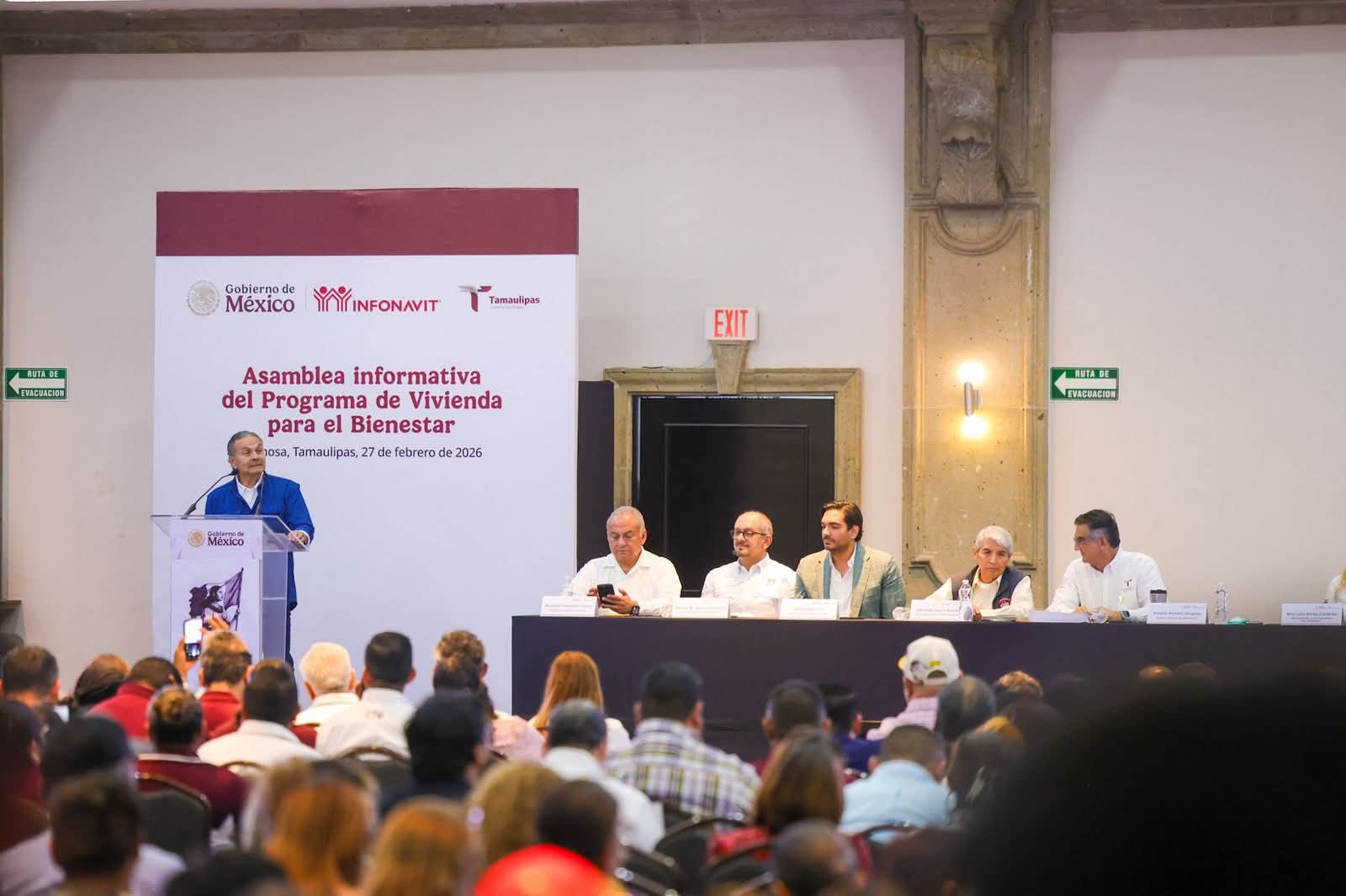 El Gobernador Constitucional de Tamaulipas, Doctor Américo Villarreal Anaya; el Director General del INFONAVIT, Octavio Romero Oropeza, y el Alcalde de Reynosa, Carlos Peña Ortiz, presidieron la Asamblea Informativa del Programa de Vivienda para el Bienestar, donde se reconoció el apoyo al desarrollo de vivienda por parte de los mandatarios estatal y municipal.