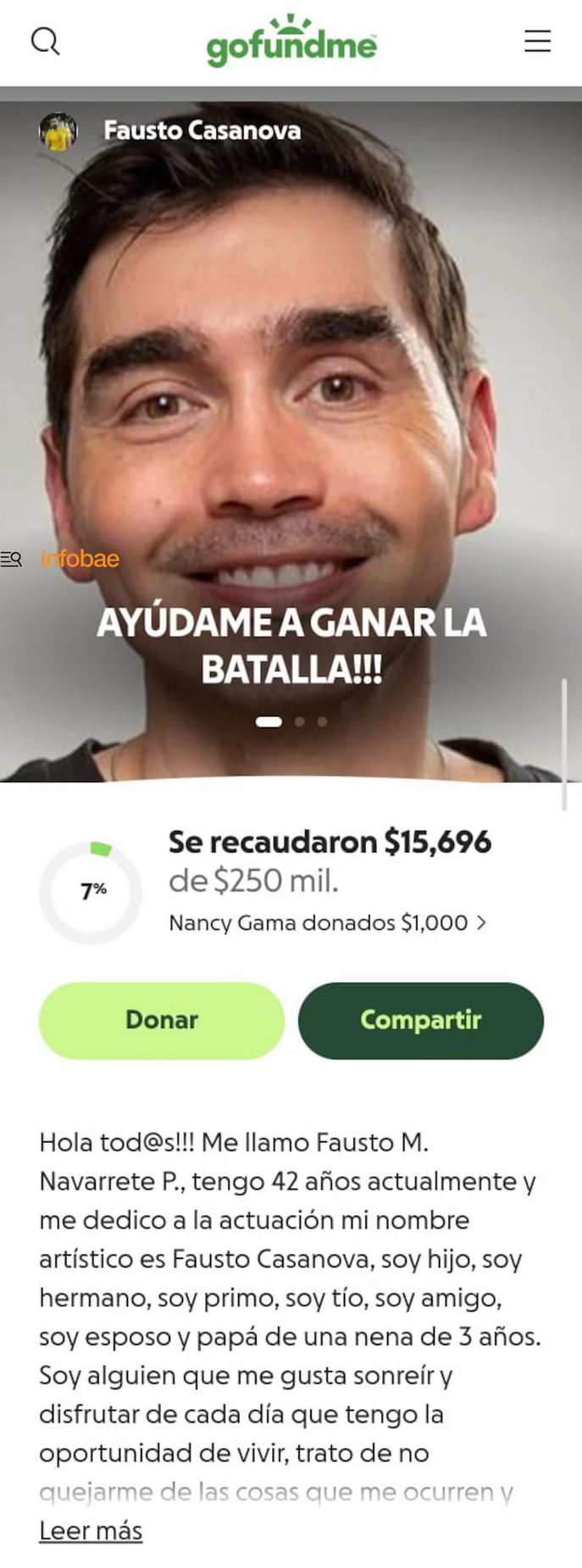 Ante la necesidad de someterse a múltiples cirugías y tratamientos aún por definir, Casanova lanzó una campaña en GoFundMe con el objetivo de recaudar 250 mil pesos mexicanos.