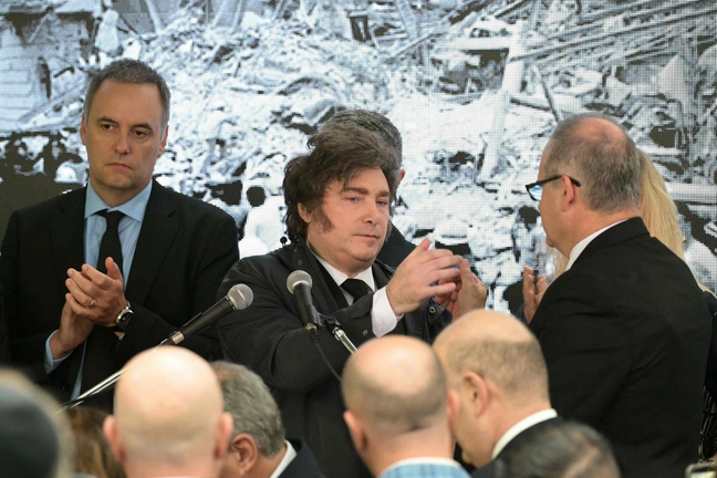 «Dejamos en claro en dónde nos paramos en este momento histórico», afirmó Milei, al tiempo que vinculó ambos atentados —el de la embajada y el de la AMIA— con el objetivo de «cercenar la claridad moral de nuestro pueblo» mediante el terror. Atribuyó los ataques al grupo Hezbollah y al Estado iraní, pese a que no existen pruebas concluyentes ni detenidos en ambos casos.